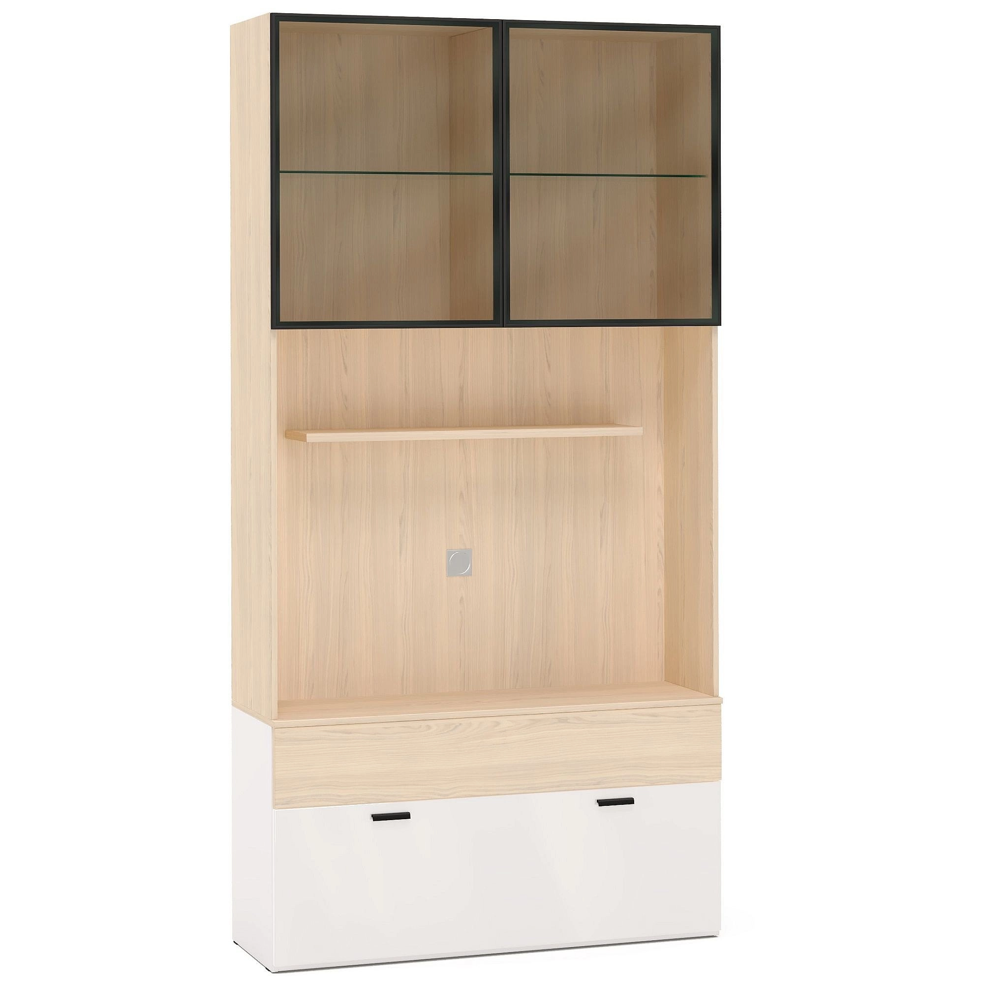 Описание: Секция ТВА - отличное решение для вашей гостиной. Она гармонично сочетается с другими изделиями данной коллекции, создавая единую стилистическую композицию, или может использоваться как самостоятельный элемент интерьера. Вариативность фасадов позволит хранить любые ваши вещи, разместив их за стеклянными дверями или во вместительных ящиках, а на полке в нише поставить приятную вам мелочь. Стеклянные рамочные фасады тонированы по особой технологии, что придает им не только необходимый оттенок, но и совершенствует их физические свойства, а также для удобства оснащены механизмами PUSH open, которые откроют дверцу простым нажатием. Подсветка стеклянной секции (приобретается отдельно) придаст дополнительный акцент интерьеру. Когда вокруг телевизора царит порядок, ничто не будет отвлекать от просмотра любимой передачи. Храните игры, пульты дистанционного управления и другие аксессуары в ящиках, которые оснащены направляющими с доводчиками с функцией плавного и бесшумного открывания/закрывания, а все провода пропустите через специальное отверстие в задней стенке. Механизм PUSH open автоматически откроет верхний ящик тумбы в отделке под светлое дерево "Туя", стоит лишь слегка нажать на фасад. Глянцевый фасад нижнего ящика с превосходным качеством поверхности, стойкой к ультрафиолетовому излучению, создает иллюзию большого пространства и визуально меняет архитектуру комнаты. За каждым фасадом ящики имеют деление на две части для вашего удобства. Ручки и металлический профиль на стеклянных фасадах - черные с матовой поверхностью, на которой не остаётся следов, они надолго сохраняют безупречный внешний вид. Размер зоны ТВА - длина 1154мм, высота до полки 670мм. Размер полки 900*190*22мм. Присаживайтесь поудобнее и наслаждайтесь, можете даже не включать телевизор.